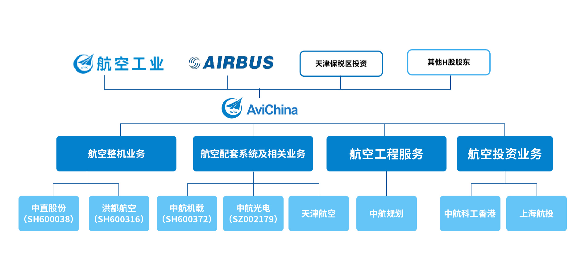 中國航空科技工業股份有限公司(簡稱“中航科工”)于2003年4月30日在北京注冊成立,注冊資本46億元人民幣;2003年10月30日在香港聯交所主板上市。母公司中國航空工業集團有限公司作為中國航空制造業的主力軍,穩居世界500強前列??罩锌蛙嚰瘓F(Airbus Group)是中航科工的戰略合作伙伴,持有中航科工約5%股份。
